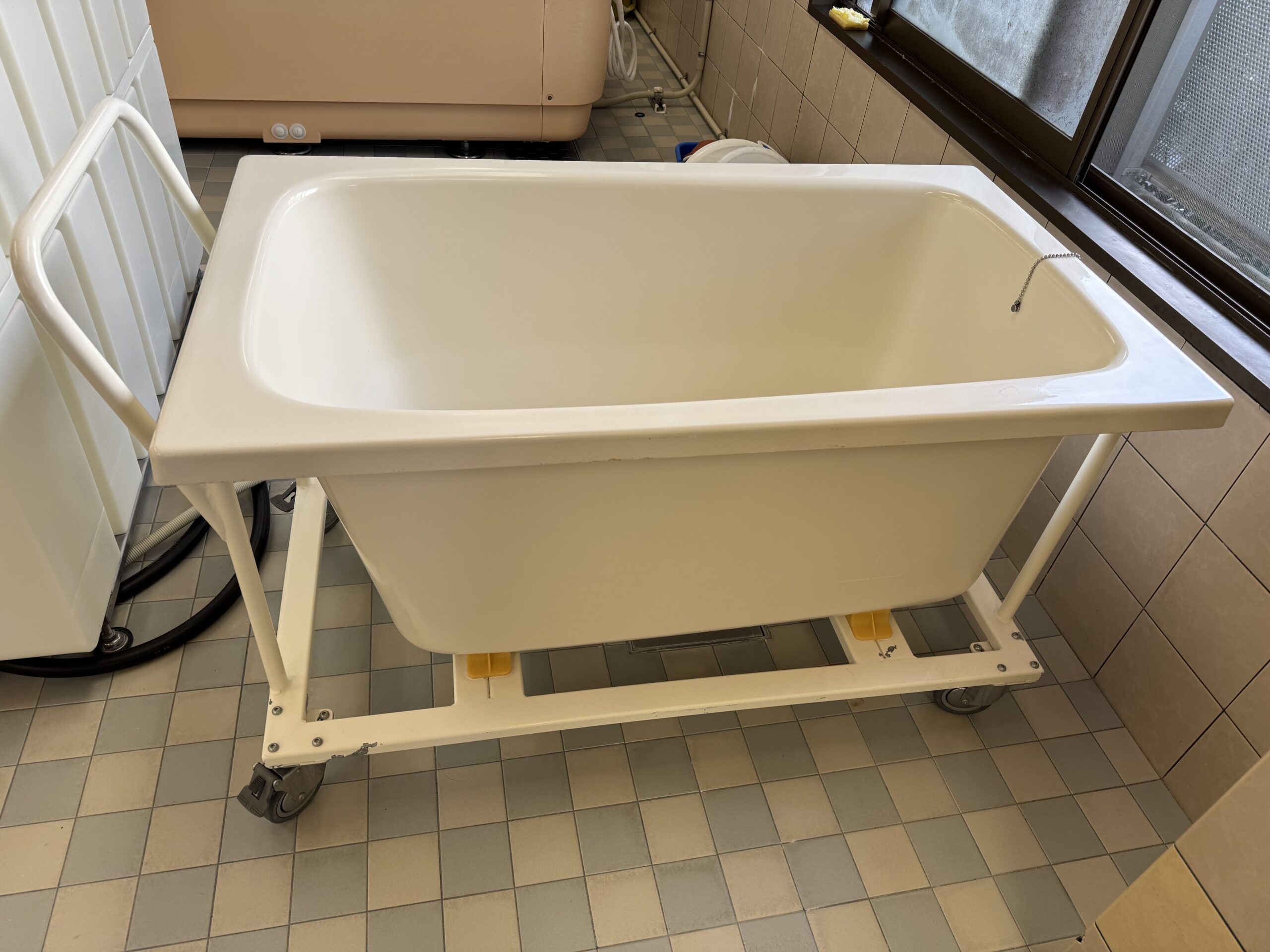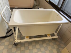 また、以前にもコラムで書いたと思うのですが、亡くなった後にお風呂に入って頂くホーローの浴槽にタイヤを付けて貰い、職員の作業が楽に、しかも綺麗になるものにしました。