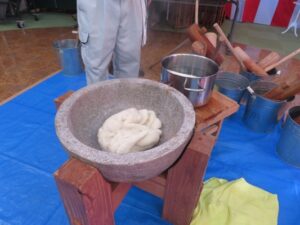 最後の1臼は伸餅にしたのですが伸餅の伸ばしは私がさせて貰いました。