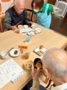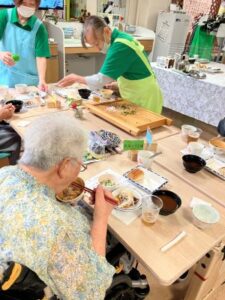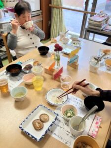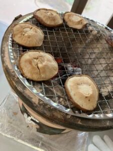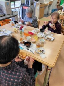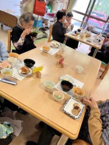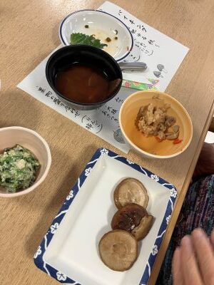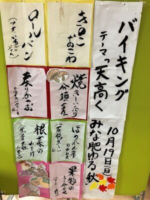 今日のえりかの里 2025.10.19 「天高く、肥ゆる秋」のバイキング 今日は皆さん楽しみにお待ちかねのバイキング、 テーマは「天高く、みな肥ゆる秋」 焼きシイタケを七輪で焼きたてを提供したり、 きのこ三昧のおこわを中心に、たくさんの秋の味覚が並びました。 皆さんご満悦で、お腹いっぱいでした。