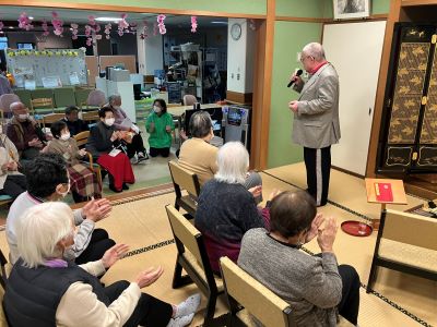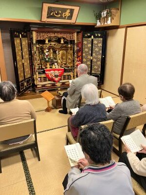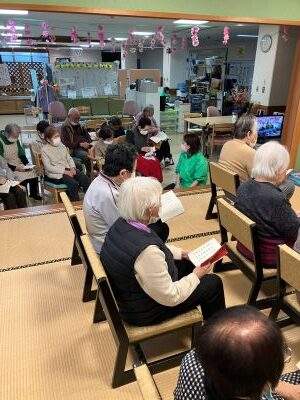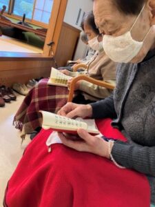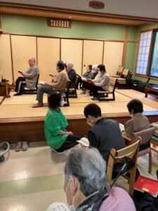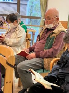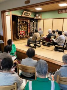 今日のえりかの里 2026.4.10 お参りに集中して 今日は雨の一日でしたが、今年度最初の理事長によるお参り。 皆さん真剣な顔で、集中してみえました。 その後は恒例の理事長による歌の披露。 今日は、「月光仮面」と「およげたいやき君」と いつもとは違う曲で聴かせて頂きました。