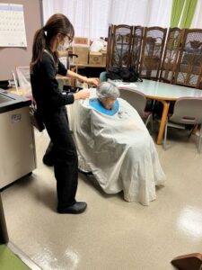 今日のえりかの里 2026.2.13 お好みの髪型にさっぱりと 今日は、月に2回の理美容の日。 日本理美容福祉協会の滋賀米原センターからお越し頂き、 利用者のお好みの髪型にカットして頂けます。 100歳の男性利用者は、丸刈り3mmで。 女性はお好みの長さにおしゃべりしながら。 「どう?若返ったでしょ。」