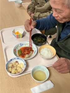 今日のえりかの里 2025.11.5 お昼ご飯は洋風、イタリアンで 今日のお昼ご飯は、洋風、イタリアン風の献立。 「いつも家では和食やで、なかなか珍しい味付けやなー」 「ここは量が多いで、全部食べ切れんわ」 肌寒い日が続くようになりました。暖かい料理を、 みんなの楽しい雰囲気で食べて頂いています。