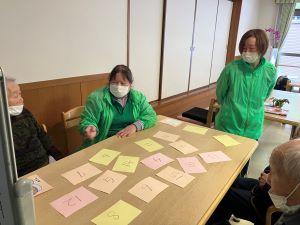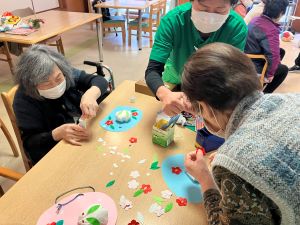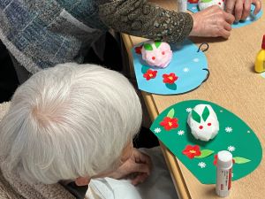 今日のえりかの里 2026.2.10 まだまだ冬は続きます 今は冬のオリンピック真っ只中ですね。 えりかの里の今日はまだまだ冬模様です。今日のレクリエーションではお鍋絵合わせです。寄せ鍋やキムチ鍋など冬にピッタリな話題の絵合わせでした。鍋の話をしながら盛り上がりました。 もう一つは雪ウサギ作りです。前回もたくさん可愛いウサギが出来ましたが今日も負けないくらいの作品が出来ました。家族が出来たと喜ばれる声も聞こえてきましたよ。