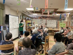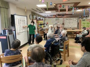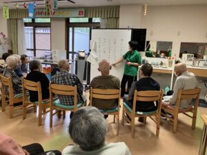 今日のえりかの里 2025.9.12 もうすぐ敬老週間です。 今日は天気が悪く、秋らしい涼しい風もありましたが、蒸し暑さも感じる日になりましたね。朝今須地区の方のお迎えに行くと元気よく蝉が鳴いていました。まだまだ、暑さは残りそうです。 本日の午後からは音楽レクリエーションです。歌に合わせて元気よく体を動かして過ごされ楽しまれてみえました。今日は少し過ごしやすかった事もあってか皆さんの動きもいつもに比べて良かったとおもいます。 14日から敬老週間が始まります。皆さん元気にご参加下さいね。