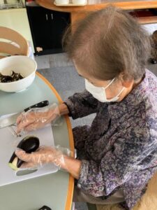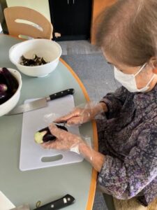 今日のえりかの里 2025.9.19 やっと秋らしい日 今日は心地よい風が吹く秋らしい気候な一日でしたね。 敬老週間4日目で今日はバラのお風呂です。キレイなバラがたくさんあり、とても華やかなお風呂になりました。 午前中はナスの煮びたしも利用者様と一緒に作成してお昼に提供を行いました。 秋ナスは美味しいですよね。今日の煮びたしも完食されました。 明日はお茶会、明後日は落語があります。まだまだ気候の変化が激しいと思いますが、体調に気を付けて頂き、元気にお越しください。