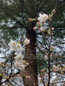 施設周りの桜もようやく開花してきました。