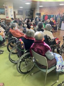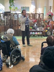 今日のえりかの里 2026.1.18 ジョイントコンサート&お誕生日の方が 今日は今年初のジョイントコンサート。 地元の高木さんをお招きして、理事長、施設長の 昔懐かしい演歌から、童謡まで、様々なジャンルを いろんな曲で楽しませて頂いています。 その後には、職員の手作りの色紙を渡して、明日お誕生日の方をお祝い。 これからも、いつもでもお元気で。