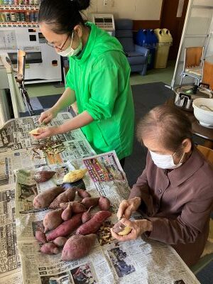 今日のえりかの里 2025.11.21 スイートポテト作り、第2弾 畑での収穫したサツマイモ、残りわずかとなり、 前回同様、スイートポテト作りを利用者と行い、 おやつに頂きました。 1から育て、召し上がる最後まで。 畑も、あとは白菜と大根です。