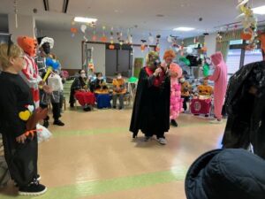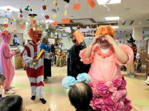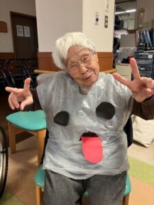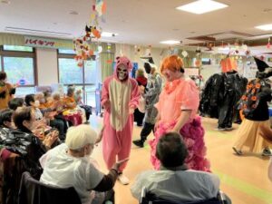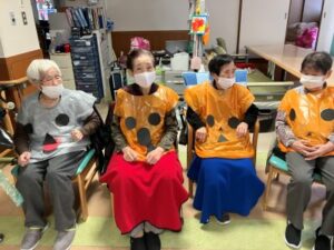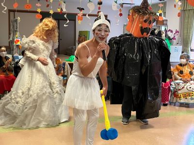 行列が到着すると、皆様にこにこ、大笑いされてみえる方も。理事長はじめ楽しいおばけやよくわからない仮装に大喜びでした。いつも以上に笑いの絶えない一日でした。まだまだ、年の瀬にむけて様々な行事がおこなわれる予定です、お楽しみに!!
