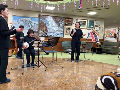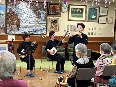 今日のえりかの里 2026.4.22 三味線ボランティア 今日の朝は快晴でしたが、少しずつ曇り空に。 フロアで種をまき育てていたエンドウ豆の芽がたくさん出て来たので、今日は、別の鉢に植え替えを行いました。無事大きく育ちおいしい豆ができますように! そして、午後からは皆様が楽しみにされている「三味線ボランティア」です。同じ関ケ原のグループだけあって利用者様の中には知り合いの方もみえ、和やかな雰囲気の中、あっという間に時間が過ぎました。またの機会を楽しみにしています。ありがとうございました。