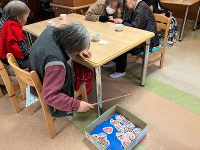 今日のえりかの里 2026.1.2 今年のおみくじは、いかがでしたか? 明けましておめでとうございます。 小雪舞う、寒い一日となりました。 元旦の昨日が木曜日ということで、新年、本日からの営業となりました。 皆さん一人一人に新年のご挨拶のあと、 職員手作りの魚釣り風のおみくじ。 皆さんの今年の運勢はいかがだったでしょう。 本年も宜しくお願い致します。