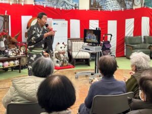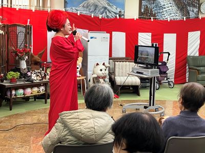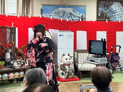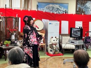 今日のえりかの里 2026.1.12 今年最初のてるてる座の公演 昨夜からの雪が積もった朝でしたが、 関ケ原よりも、垂井、大垣の方が積雪が多いかったと話題に。 午後からは今年初めての大人気、てるてる座の公演でした。 みなさん楽しみにしておられたので、大いに盛り上がりました。 いつも新しいパフォーマンスで楽しませて頂いています。