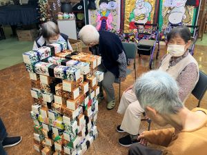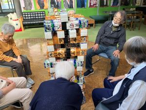 今日のえりかの里 2025.10.1 今日から10月 今日は通り雨が降り、一時期は強い雨で天候が心配になりましたが、夕方には良い天気になりましたね。 今日は午後からは久しぶりにジェンガのレクリエーションです。涼しくなってきて動きも元気になってきています。皆さんスイスイと牛乳パックジェンガをひかれてみえました。牛乳パックに書いてあるお題もスラスラと答えられてみえました。 今日から10月ですね。気候の変動は注意しなければいけませんが、美味しいものがたくさん出てくる時期です。えりかの里でも秋まつり等イベントがありますのでお楽しみに!
