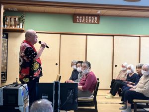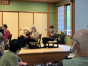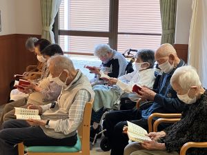 今日のえりかの里 2025.9.26 今日はお参りの日です。 10月に近づきましたが、今日は蒸し暑さを感じる日になりましたね。 今日は午後から理事長を導師に迎えてのお参りの日です。以前より暑さも比べ物にならないくらい涼しくなり皆さんも理事長に負けないくらいの声を出してお経を唱えて下さいました。 お参りの後はカラオケを披露して下さいました。さすが理事長のパワフルな声はお参りの後も健在でした。