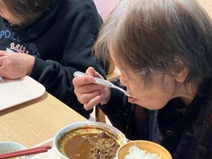 今日のえりかの里 2025.12.9 今日も元気一杯でした 今日も天気が良かったですが寒さを感じる一日になりましたね。 今日のお昼ご飯はビーフカレーでした。お昼に近づくと、とてもいい匂いがしてきてお腹が空いてきました。寒い日に温かいカレーは美味しく皆さんしっかり完食です。 午後からはリハビリ体操ももちろんですが、再来週に迫ったクリスマス会に向けて伊勢街道祭り歌の練習も一緒に行いました。カレー効果か皆さん普段よりもいい動きで午後からもお元気いっぱいにすごされていました。