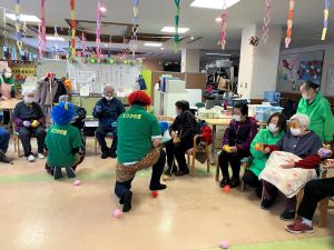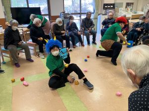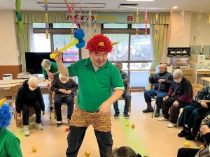 今日のえりかの里 2026.2.2 今日も鬼が現れました! 明日は2月3日節分当日です。当日来られない方もお見えになるので、今日も鬼が出勤です。皆さん寒さや年齢を感じさせないくらいに元気よく玉を投げて下さりました。最初は「おにはそと」と声も元気に出されていましたが、途中から当てる事に夢中になられとても楽しそうに投げられていました。 皆さんの今日の笑顔のようにたくさん福が来るといいですね。これからも元気にお越しください。