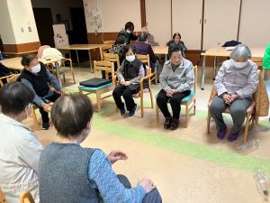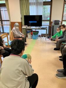 地域密着型デイサービスに変わる関係で今日で利用が最後となられる方もみえますが、お互いに健康を祈り合ったりとお互い最後の交流を楽しまれながらお過ごしでした。