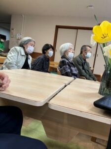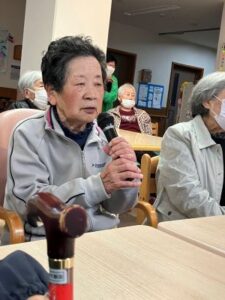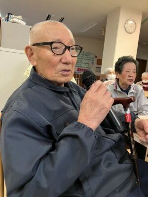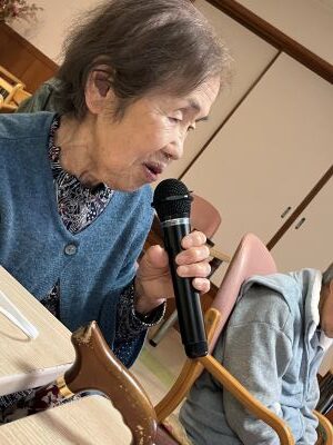 今日のえりかの里 2026.4.15 個性豊かなカラオケクラブ 今日はあいにくの雨模様。肌寒さも感じる一日でした。 午後からのレクリエーションは、習字とカラオケのグループに分かれ、 一方、カラオケでは、利用者にリクエストを聞きながら、 童謡やもちろん演歌、珍しく軍歌までありました みんな一生懸命歌って、笑いある楽しい時間でした