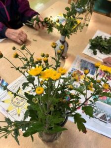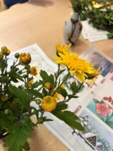 畑でようやく菊の花が咲き始め、寒い日でしたが、利用者と様子を見に行きました。