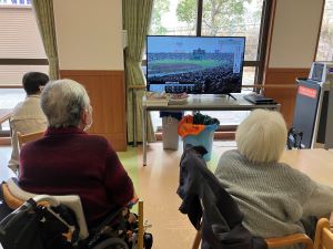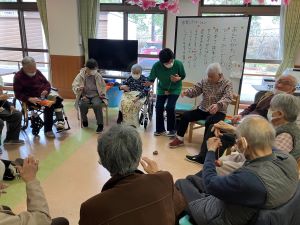 今日のえりかの里 2026.3.22 午後の様子 今日は暖かさも感じる良い一日になりましたね。 現在行われている、春の選抜高校野球は第二試合に岐阜の大垣日大とお隣滋賀の近江高校との試合があります。滋賀県から利用して下さっている方もみえますし、生まれは滋賀でも結婚して関ケ原に住んでみえる方も多くみえます。滋賀、岐阜、どっちも応援する人がみえたりと、午後からは熱心に甲子園を観てみえました。 その後はミニ音楽レクリエーションで皆さんと一緒に楽しみました。