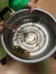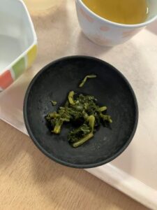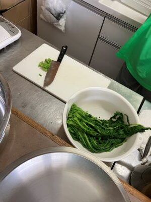 今日のえりかの里 2025.11.12 大根葉を炊いて頂きました。 昨日畑で摘んだ大根葉、午前中に利用者とい一緒に調理して、 お昼に提供。 あれこれアドバイスを頂ながら、ワイワイ賑やかに 「油あげがあるともっと美味しくなるのにな」 畑の成長、収穫、調理を楽しみながら、残さず美味しく頂いています。