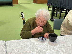 今日のえりかの里 2025.11.9 寒い日には最高のお茶 今日は雨も降り寒い一日になりましたね。 今日はお茶会の日です。雨ふりで寒い日には温かいお抹茶を飲むのが最高ですよね。今日のお抹茶のお供はようかんでもあり、よりお抹茶が美味しくなりました。 皆さん自然と優しい笑顔になられ「美味しい」と喜ばれてみえました。こちらも思わず笑顔になり今日のお茶会会場は温かかったです。