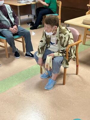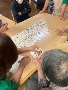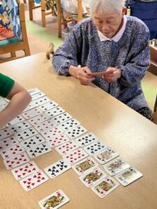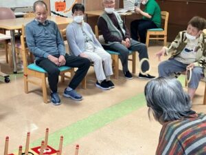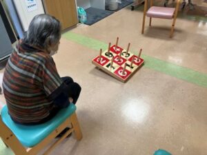 今日のえりかの里 2025.10.5 寒さも感じる様な雨模様でしたが 今日は、朝から雨模様。秋になり始めたと最近感じたところでしたが、 「寒い」「寒い」と利用者からも声がもれるなど 冷たい雨の一日となりました。 そんな中でも、午後からのレクリエーションの様子。 輪投げ 「なかなか上手いこと入らんがねー」 「私だけかな、こんなに下手くそなのは」 と、拍手や笑い声。 トランプ 「「いつもあんたが一番やないの」 「配った職員さんが悪い」 など、みんなでワイワイ楽しんで頂きました。