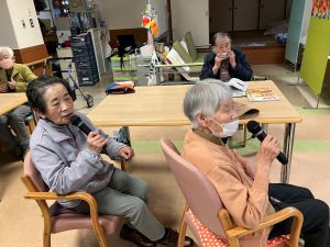 今日のえりかの里 2025.10.22 寒さを吹き飛ばせ 今日も寒さが身に染みる天気になりましたね。 今日はカラオケです。すっかり定番となって皆さん以前とはくらべものにならないくらいの腕前になりました。まさに寒さを吹き飛ばすかのような熱唱で歌手が乗り移ったのではないかと思うくらいです。 今日も元気の出る歌声をありがとうございました。また、聴かせて下さいね。