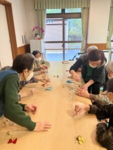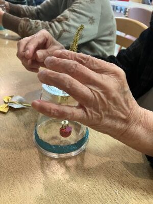 今日のえりかの里 2025.11.25 手作りベルを作りました もうすぐクリスマス。 今日のレクリエーションの時間に、希望者の方は、 クリスマスのベルを1から作りました。 ワイワイ、賑やかにおしゃべりしながら、 完成。