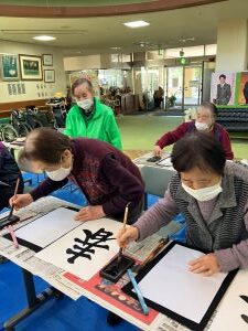 今日のえりかの里 2026.2.17 春がもう来た? 今日は週2回の書画教室の日です。今日のテーマは春と春よ来い早く来いです。外を見ると温かく春の陽気が近づいている感じがしますね。これだけ早く温かくなると夏が心配になりますが… 席を立たれて元気に字を書かれてみえ、今日もたくさんの作品を作って頂きました。 午後からも皆さん体をしっかり使い体操やレクリエーションを楽しまれてみえました。朝夕と昼間の寒暖差に気を付けてまた元気にお越しくださいね。