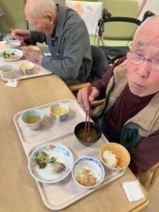 今日のえりかの里 2025.12.30 栄養満点のお昼ご飯、今年食べ納めの方も 今年も残すとこあと2日となりました。 管理栄養士監修の食事、いつも美味しく食べて頂いていますが、 一人暮らしの方もみえ、 「ここではたくさん食べれるわ」 「家ではそこら辺にある物食べるだけやで」 「美味しいし、量もあるでなー」 と今年一年も食を通しても楽しんで頂きました。 来年も、また栄養満点、美味しいお食事を用意させて頂きます。