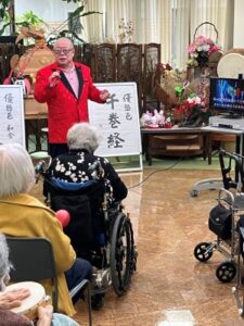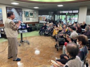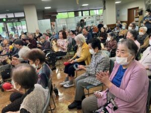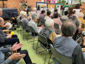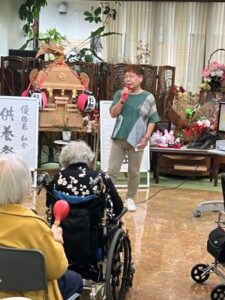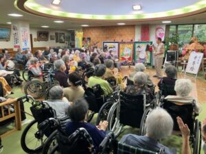今日のえりかの里 2025.9.29 歌声響く、ジョイントコンサート 本日は月に1回のジョイントコンサート。 会場にはたくさんの利用者が集まり、 演歌や唱歌、童謡などを、髙木さん、理事長、施設長の メドレーで10数曲。 最後まで大いに盛り上がった1日でした。