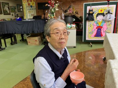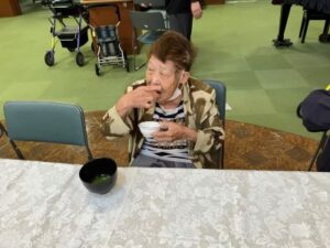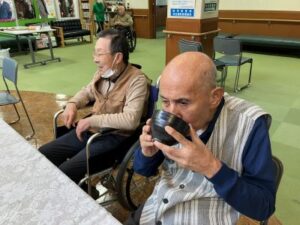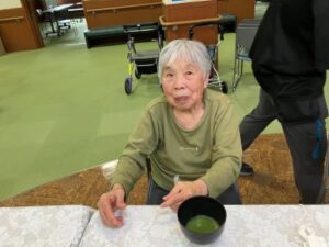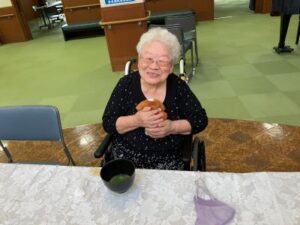 おいしいお茶菓子とお抹茶を施設長から振舞って頂きました。