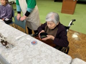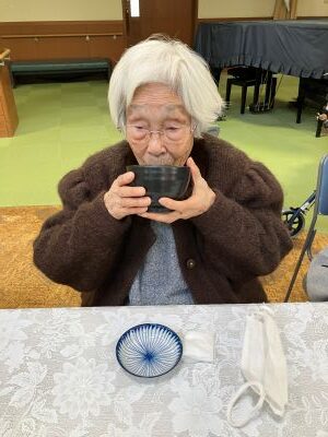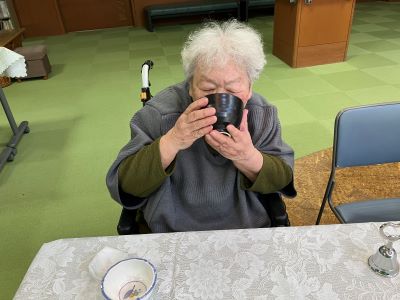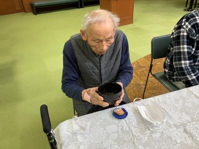 今日のえりかの里 2026.3.8 美味しいお抹茶を頂いて 本日は、明け方雪が舞う寒い朝でしたが、 午前中は、月に1度のお茶会の日。 施設長に美味しいお茶をたてて頂いて、 お茶菓子と共に、また、おしゃべりしながら 楽しい時間を過ごして頂きました。