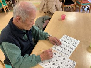 今日のえりかの里 2026.1.5 脳トレ 正月の大型連休も多くの方が昨日で終わり、今日から仕事が始まる方が多いかと思います。 えりかの里でも、今日から多くの方にご利用して頂け、賑わいある日常が帰ってきました。 今日は、皆さんでちょっとした勉強会です。難読漢字を皆さんと一緒に取り組まれました。お互いに知恵を出し合って考えていき、時には職員もヒントを出したり、一緒に考えながら行いました。 どこかで見覚えがある漢字に苦戦しながらも答えが分かるとすっきりされた様子でした。