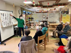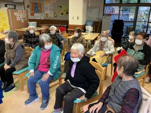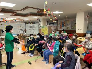 今日のえりかの里 2025.11.15 音楽レクリエーションで今日もリフレッシュ 今日は、皆さんが楽しみにされている音楽レクリエーションの日でした。 元気よく歌を歌ったり、肩回りをほぐす運動をしてリラックスされている姿が印象的でした。 今日は、時折日も差し部屋にいても比較的暖かかったですが、これからどんどん寒さも増してきます。皆さん風邪などひかないように気を付けて栄養、睡眠しっかりとってお過ごしいただきたいと思います。