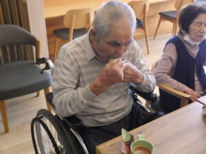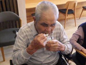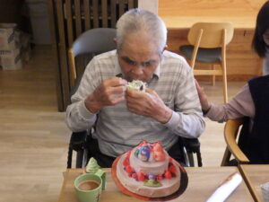今日の優・悠・邑 和 2025.10.12 お誕生日(^^♪ 今日10月12日はK様のお誕生日です。 この利用者様は、なごみができてから一番最初に入所された方です。 96歳になられましたが、食事も残さず召し上がる元気な方です。 シャインマスカットののったパフェでお祝いです。 女性の入所者様3名と職員でハッピバースデーの歌をうたいましたよ。 美味しそうにあっという間に召し上がられました。 いつまでも元気でいてくださいね。(^▽^)/