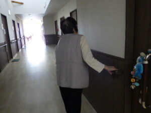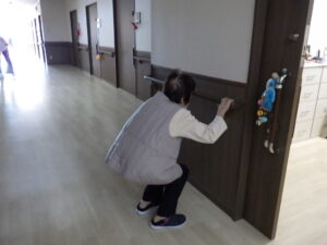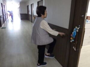 こちらの方は廊下の手すりを使って足上げ運動50回