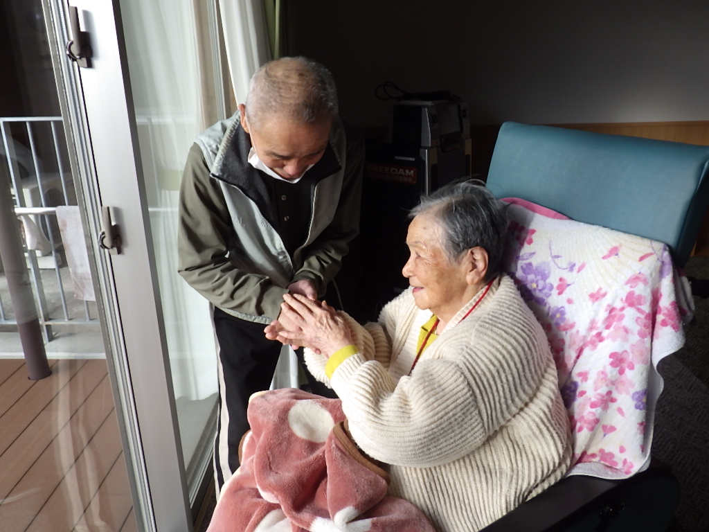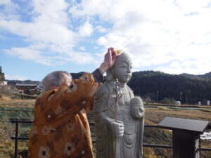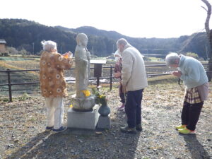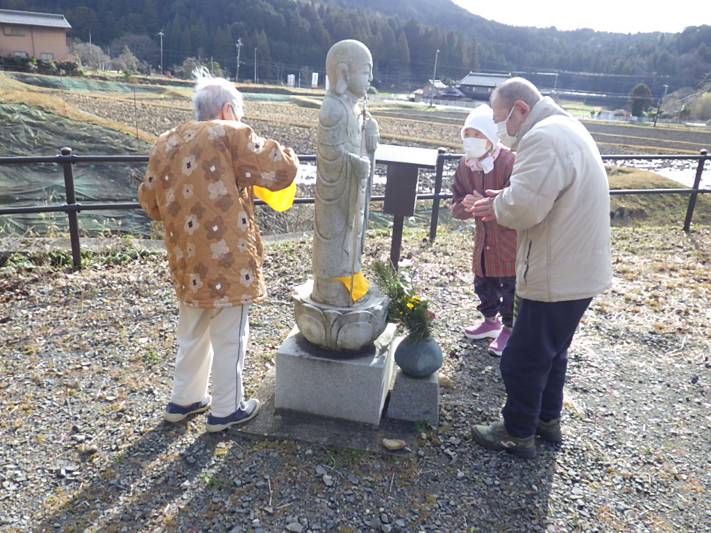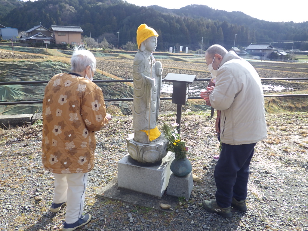 日差しは暖か 風は肌にしみる中 入所者様とお地蔵様のお参りに行きました。