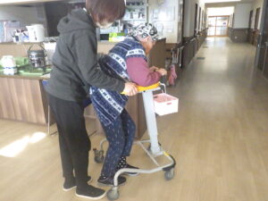 今日の優・悠・邑 和 2026.1.17 それぞれ頑張っています 今日もぽかぽか陽気で、1月とは思えないようなお天気でしたね リハビリで歩行訓練を頑張る利用者様です 立ち上がりや、椅子から車椅子への移乗が少しでもスムーズに出来るよう支援しています 毎日の積み重ねが大事ですね(^▽^)/ 天気が良いので、近くの石屋さんまでお散歩です 七福神やドラえもん?可愛いですね。ご利益があるかも? 作品作りの為、利用者様に色塗りをしてもらいました ここまで順調に進んでいます 仕上がりが楽しみです!