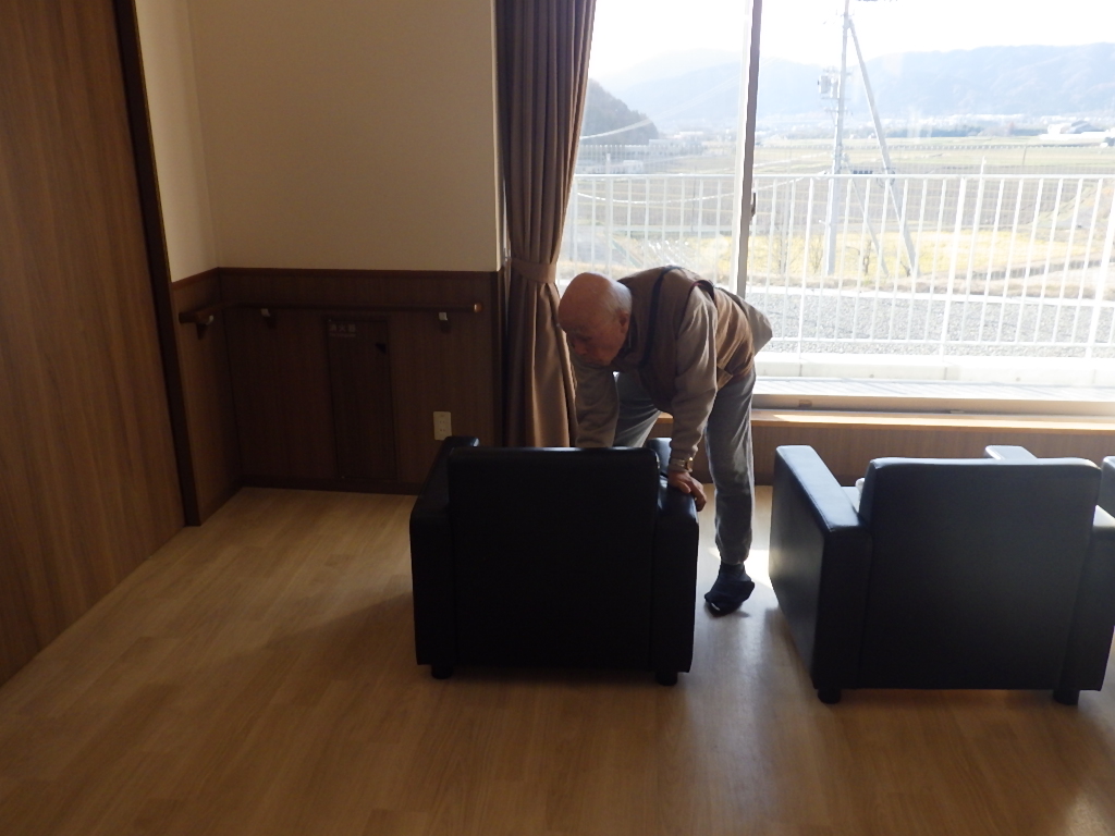 朝9時です。みんなで使うソファを毎朝丁寧に拭いてくださいます。