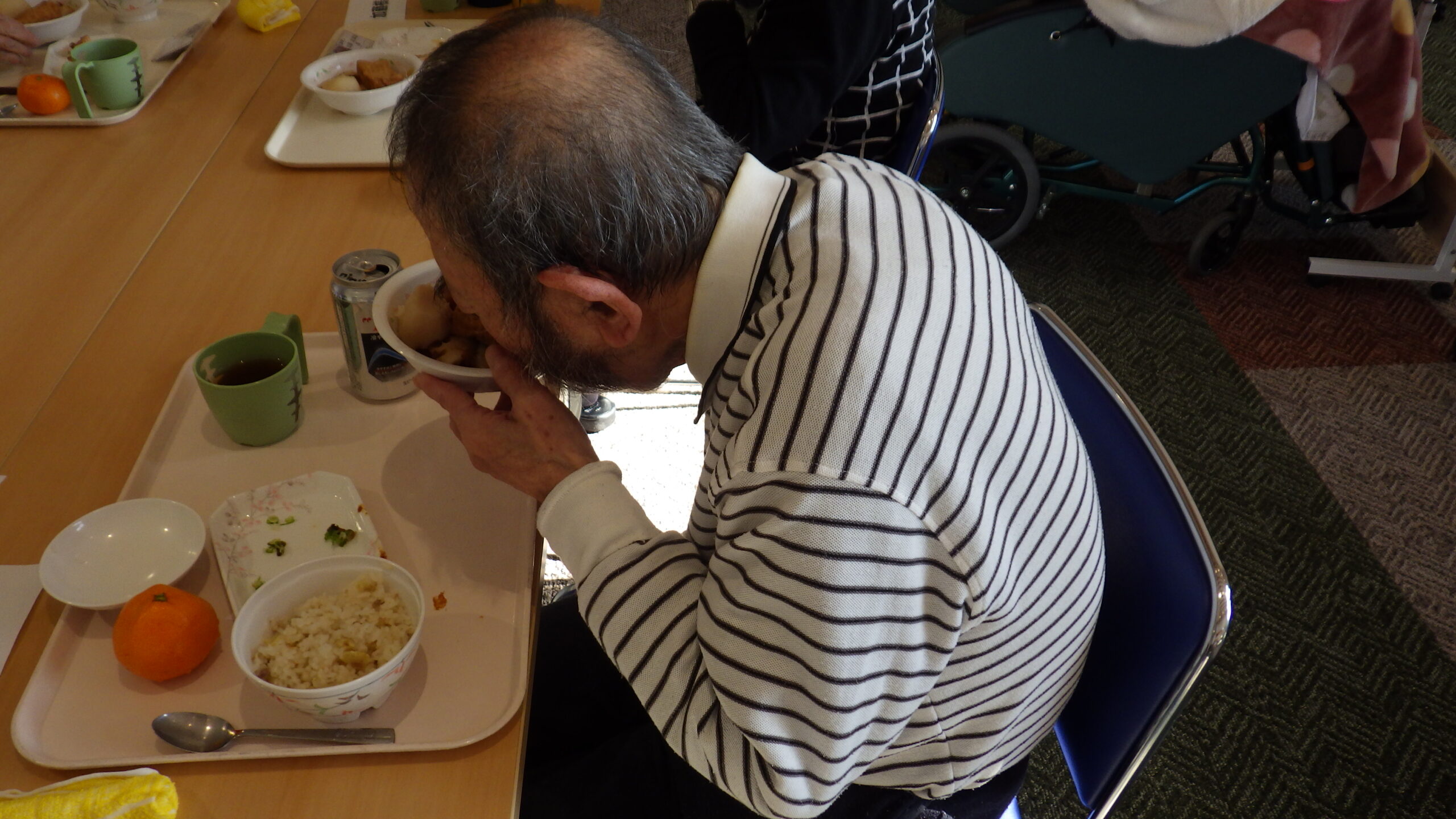 今日の優・悠・邑 和 2025.12.16 なごみの忘年会 今日はなごみの忘年会です。 メニューは、和で採れた栗でほっくり栗ご飯、熱々豆腐の味噌田楽、あったかおでん、あまーいみかん 皆さん何回もお代わりされたり、ちょっぴりお酒も入ってほろ酔い気分の方 カラオケで自慢ののどを披露される方、それぞれ楽しんで頂きました 皆さんお腹いっぱい食べていい笑顔を頂きました。 お天気も良くいい忘年会になりました。 次はクリスマス🎅🎄かな? 暖かい日が続くと良いですね。