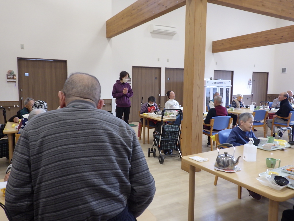 今日お誕生日の方がみえ食事前にご挨拶して頂きました。