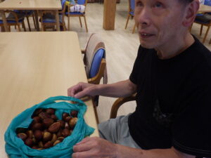 今日の優・悠・邑 和 2025.10.4 やっと秋めいてきました。 施設内で収穫した栗を、視覚障害者の方に手で触れて頂きました。懐かしそうに栗ご飯、栗きんとん等食べたいなと言ってみえました。笑顔が出ていました。 4カ月前に職員が挿し木をして育てました紫陽花が、上手に育ちました。入居者様と施設内に植えたいと思います。来年の梅雨時がとても楽しみです。 毎日エプロン等、入居者様が綺麗にたたんで頂いてありがとうございます。毎日やって頂く事は大切ですね。職員とても助かっております。本当にありがとうございます。 明日はどんな日になりますか楽しみです