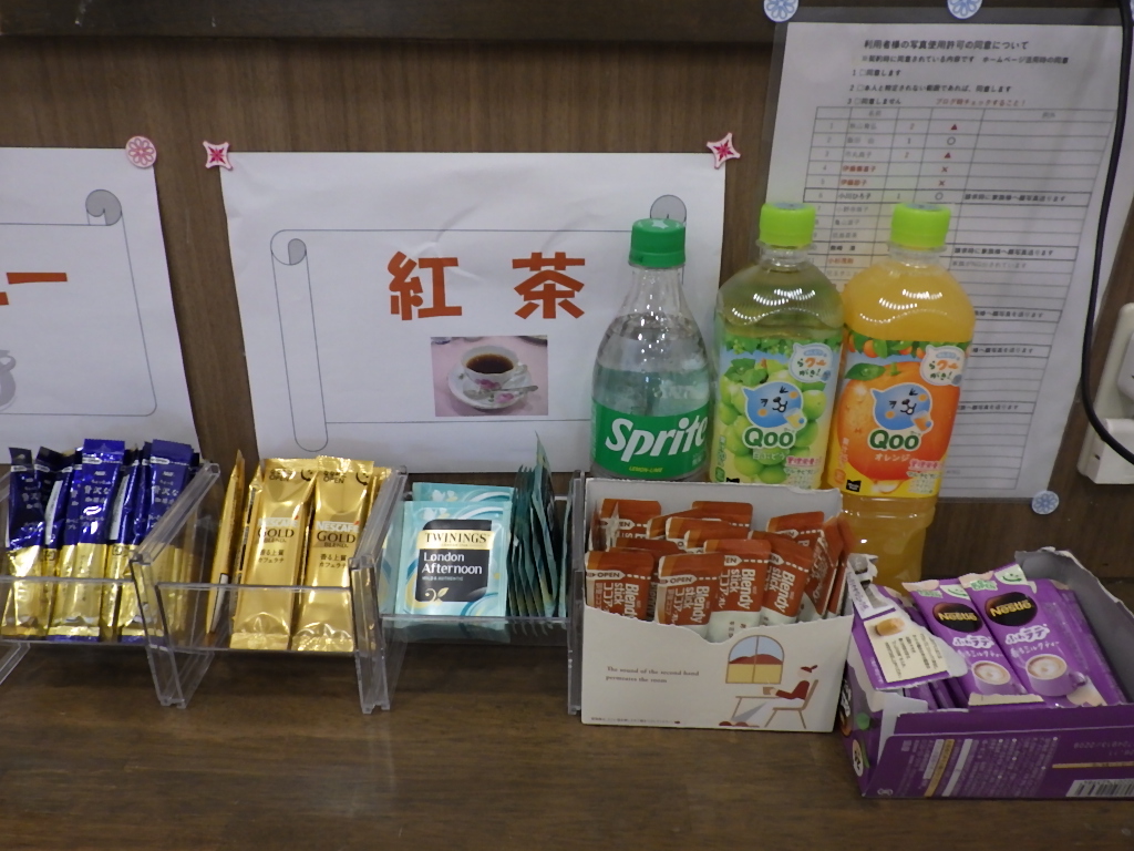 楽しいレクリエーションの後はお楽しみのケーキです。今日はフリードリンクです。普段飲まれないような紅茶、白ブドウジュース、オレンジジュース、カフェオレを楽しまれました。