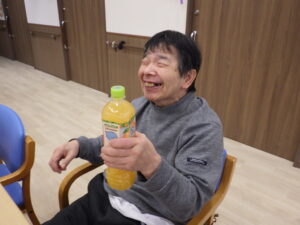 オレンジジュースがお好きな入所者様は「ペットボトルごと飲んでもいい?」と笑われていました。