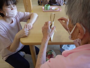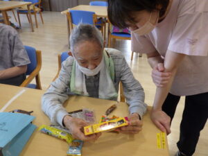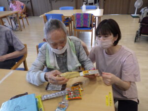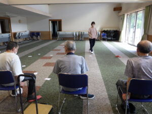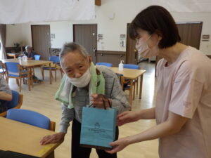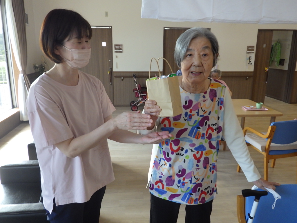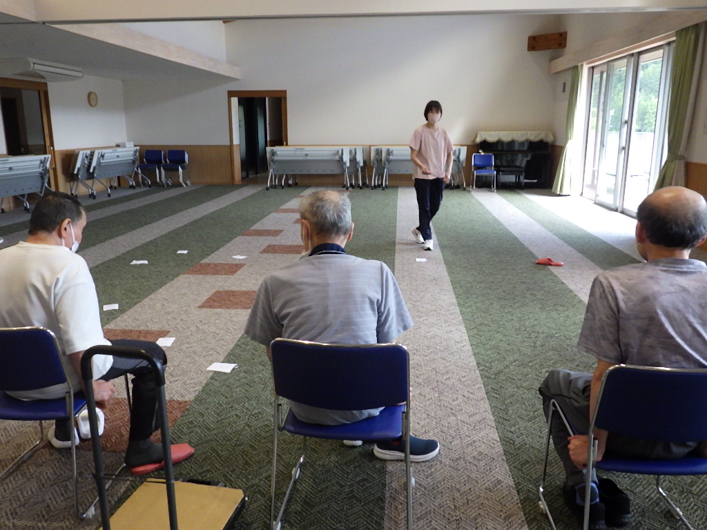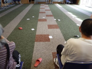 今日の優・悠・邑 和 2025.9.23 スリッパ飛ばしました!! 今日はスリッパ飛ばしゲームを行いました。 よう 1位の方5m90㎝、2位は3m80㎝、3位は3m70㎝との結果になりました。 皆さん、練習の段階からとっても真剣にスリッパを工夫しながら飛ばしてましたよ(^▽^)/ 今回は3位の方までしか賞品が出ませんでしたが、来年はグレードアップしてくれることを 期待したいですね! 今日は沢山ご参加いただきありがとうございました。 お疲れ様でした。