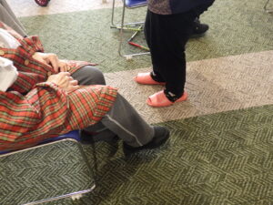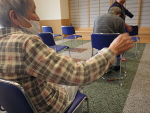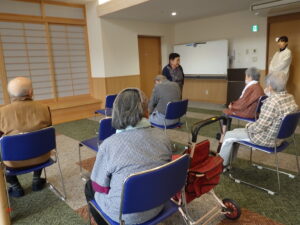 ラフターヨガの(三輪先生)が来てくださいました。始めは体をほぐす体操から始めました。