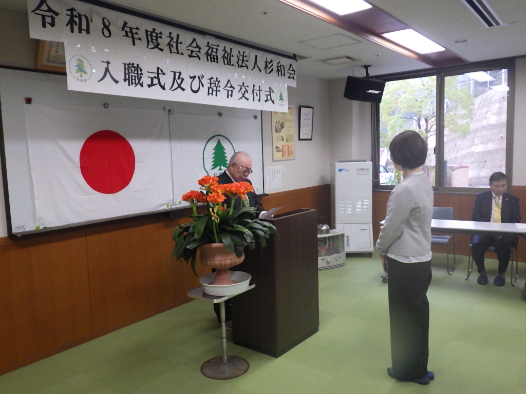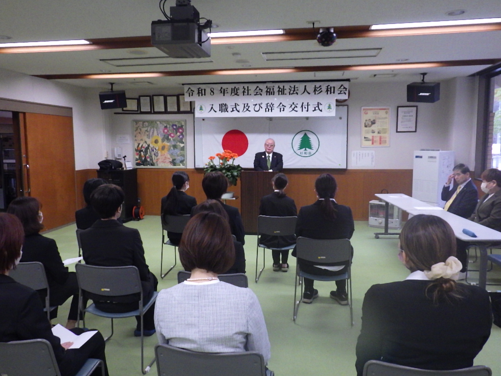今日の優・悠・邑 和 2026.4.1 今日からスタート 今日も雨模様ですが、今日から新年度の始まりです。 今日は杉和会の入職式及び辞令交付式が今須で行われました。 ここ和にも新しく2名の方が来られました。 ワクワクとドキドキを持って皆さん一緒に頑張りましょう。 宏慈のフロアーも今日から新しくスタートです。 毎日の生活が気持ちよく過ごせるようみんなで頑張っていきましょう。