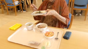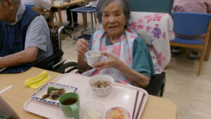 今日の優・悠・邑 和 2025.9.15 今日は敬老の日です 今日は敬老の日です。 お昼のメニューもお祝い膳が出ました。 お赤飯、茶わん蒸し、銀鱈の照り焼き(オクラ添え)、柚子なます、フルーツ(梨) 皆さん美味しそうに召し上がってみえました。 食後一息ついての入浴、今日は池田温泉のお湯が 湯船に入ります。職員さんがタンクでお湯を入れます。 皆さんつるつるで肌がすべすべになるわと好評です。 温泉気分を少しでも味わって頂きリフレッシュできたらいいですね。